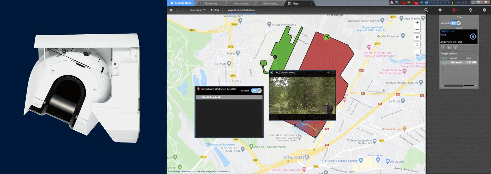 Genetec is the only company to leverage the live X&Y coordinates provided by the REDSCAN LiDAR to create critical area mapping and video tracking, including advanced intelligent features such as automatic target path fusion. This feature automatically merges single targets detected by multiple sensors together as one to help reduce the number of events presented via the Security Center Platform to the security staff and make them more relevant.