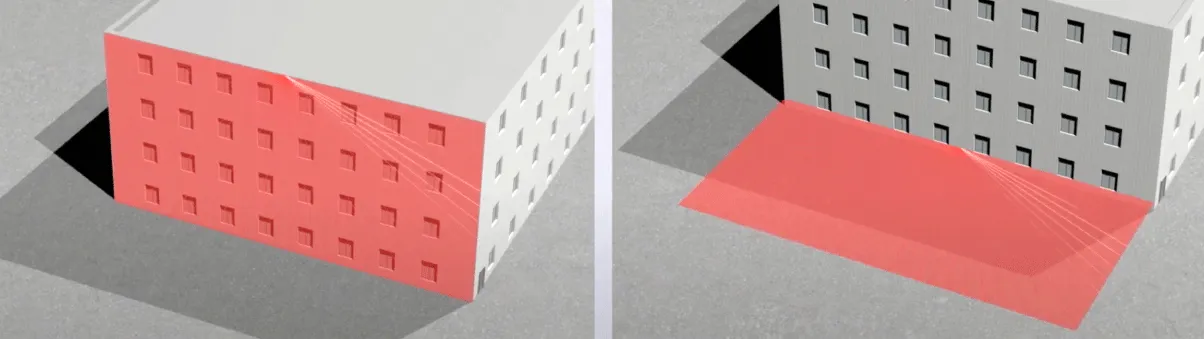 The latest evolution in the award-winning REDSCAN LiDAR series, REDSCAN PRO can very accurately detect intruders to a range of 165x330ft (50x100m), without any ‘gaps’ in the detection or the reliability ‘fading’ with range. By creating rectangular as opposed to circular (fan-shaped) detection patterns, there are no unnecessary overlaps, providing great coverage for virtual wall applications such as facade and fence protection, and for virtual planes to cover open areas, ceilings and roofs.