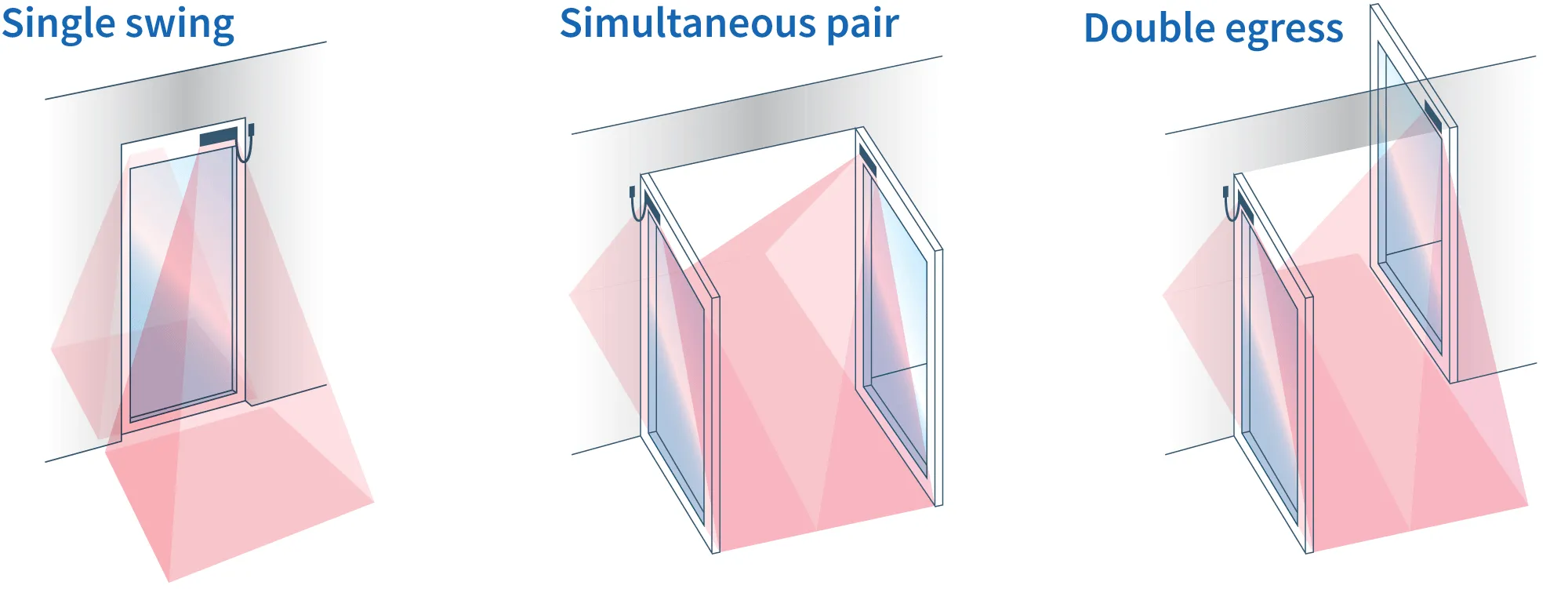 - For detection of moving or stationary people in the swing path of doors