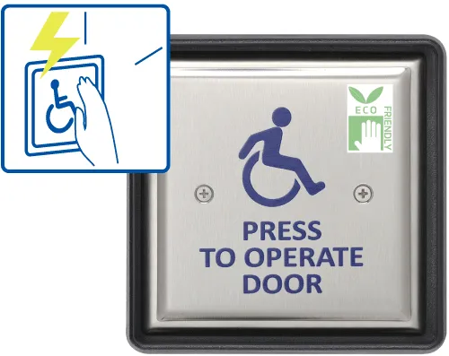 These wireless and battery-free push plates from OPTEX feature Energy Harvesting Technology. The energy captured from pushing the plate powers the transmitter, which sends a wireless signal to the receiver to open the swing doors. You will never have to replace a battery or run a wire for your door switch again! The eco-frinedly OPTEX Energy Switch series combines the best features of wired and wireless switches.