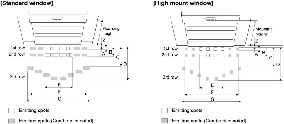 - The actual detection area may become smaller depending on the ambient light, the color / material of the object or the floor as well as the entry speed of the object.
