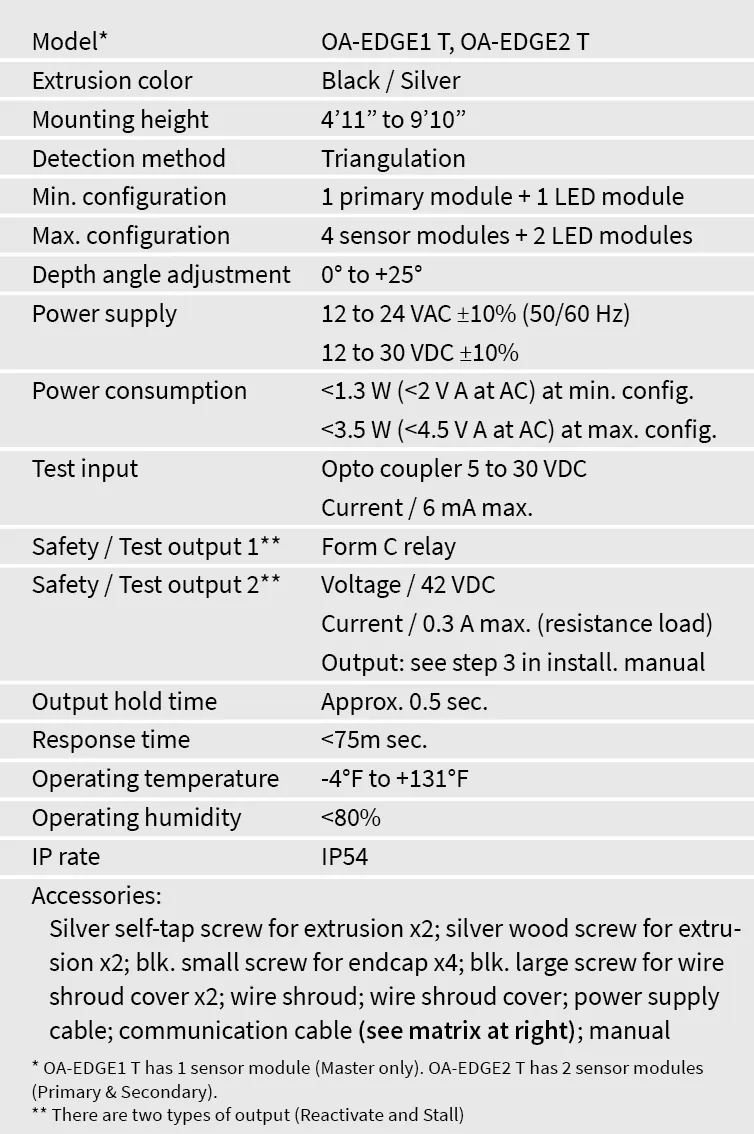 The OA-Edge T series is based on OPTEX's Active Infrared Triangulation Technology. Due to the modular design, you can upgrade the safety level of the sensor by adding additional modules.