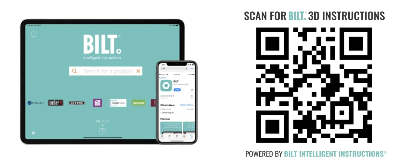 The award-winning BILT app provides 3D interactive instructions that are voice & text-guided. Beginning with a product overview, BILT includes tools required, parts included and directs the procedure step by step.