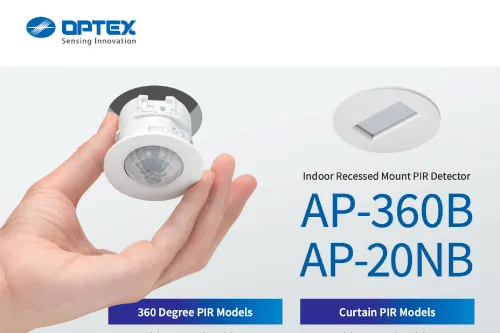 The AP-360B/20NB(C) is a series of recessed mount indoor PIR detectors. The AP-360B(C) provides a 360˚ volumetric detection area while the AP-20NB(C) provides a 20ft. (6m) curtain area. These discreet detectors can offer low-profile installation for various application needs.