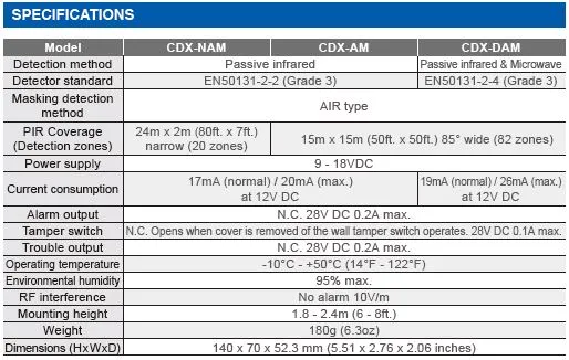 The CDX series uses AIR technology to detect masking. For stability, the CDX differentiates between true masking and other masking caused by environmental changes such as dust/dirt adhesion, temperature changes and direct light by optimizing it's sensitivity.