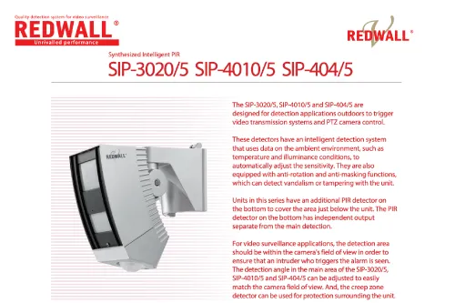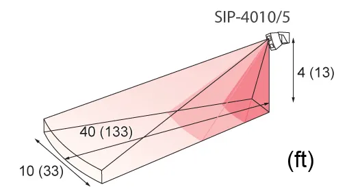 The SIP-4010/5 is designed for mid-range outdoor detection applications to trigger video transmission systems and PTZ camera control.The detector has an intelligent detection system that uses data from the ambient environment, such as temperature and illuminance conditions, to automatically adjust the sensitivity. It is also equipped with anti-rotation and anti-masking functions, which can detect vandalism or tampering with the unit. The SIP-4010/5 has an additional PIR detector on the bottom to cover the area just below the unit. The PIR detector on the bottom has an independent output separate from the main detector, while the detection angle in the main area of the SIP-4010/5 can be adjusted to easily match a camera's field of view.