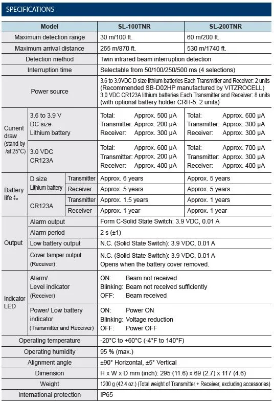 The SL-TNR series offers a cost-effective and versatile solution for protecting a perimeter, where cabling is an issue or inconvenient.