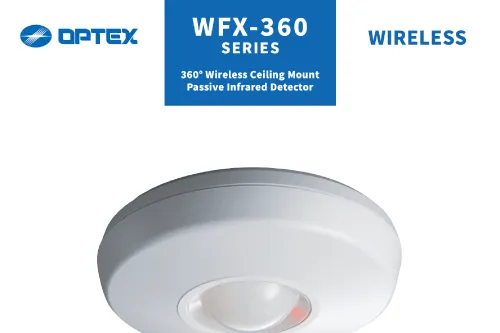 The wireless WFX-360DS is an extremely cost effective yet uncompromising battery operated 360° ceiling mount passive infrared detector. It provides 40ft diameter detection range with up to 7 years of battery life, an OPTEX designed hard spherical lens that protects against false alarms caused by environmental or temperature changes, with a sleek & compact design that suits all types of installation applications. The WFX-360DS includes a built-in transmitter compatible with DSC 433MHz Wireless Systems.