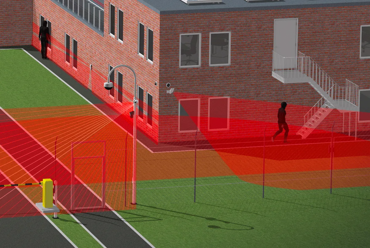 Active infrared beam sensors and REDSCAN LiDAR create customizable virtual perimeters and detect movement around buildings, enabling early threat identification even in challenging environments where physical barriers are absent.
