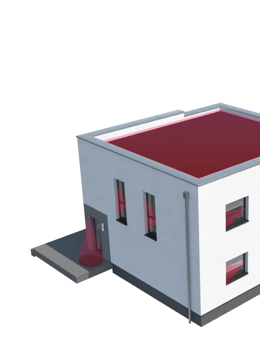LiDAR creates precise virtual planes to detect movement based on size, speed, and direction, making it ideal for guarding doors and windows. Passive infrared curtain sensors form narrow detection zones along building edges to catch intruders without reacting to light changes or moving branches.