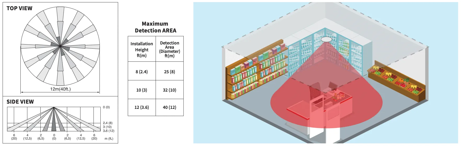 The wireless WFX-360DS is an extremely cost effective yet uncompromising battery operated 360° ceiling mount passive infrared detector. It provides 40ft diameter detection range with up to 7 years of battery life, an OPTEX designed hard spherical lens that protects against false alarms caused by environmental or temperature changes, with a sleek & compact design that suits all types of installation applications. The WFX-360DS includes a built-in transmitter compatible with DSC 433MHz Wireless Systems.